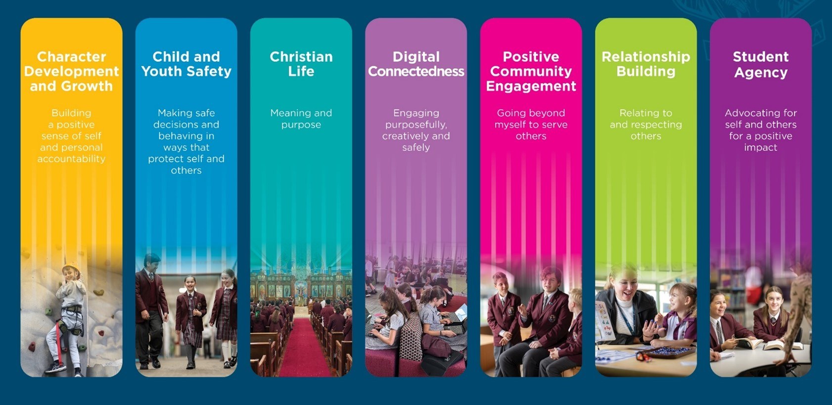 We take a holistic approach to pastoral care and wellbeing, in tandem with our academic and co-curricular programs, as we endeavour to create and maintain a safe, nurturing and educational community where students can thrive.