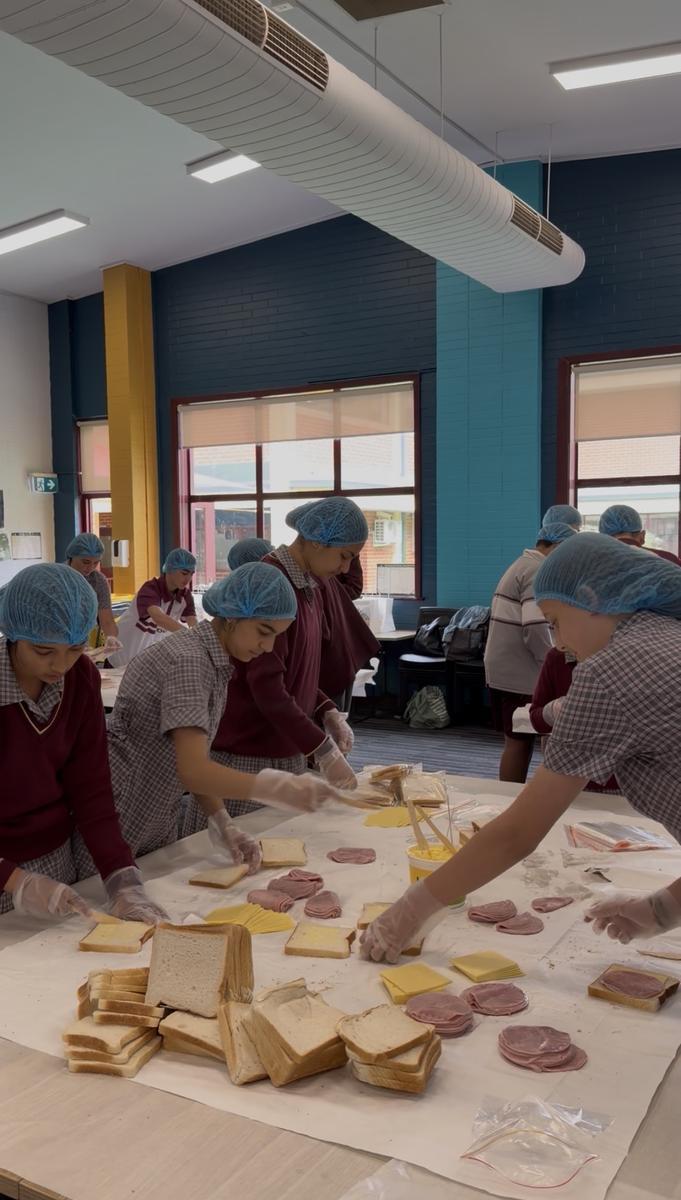 Recently, our Year 7 students took part in a meaningful service activity, preparing sandwiches for a crisis centre as part of their pastoral program and the school’s commitment to Service as Action. Working together as a team, they produced an incredible 400 sandwiches, which were delivered to those in need through the organisation 5 Loaves.